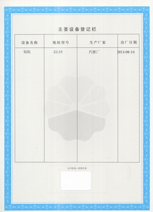 大慶東油15001隊(duì)(大慶油田)資質(zhì)證書(shū)