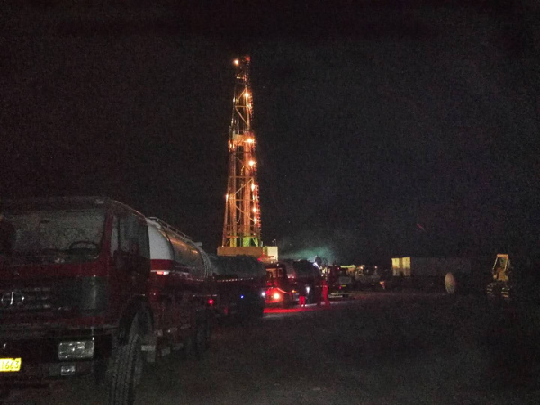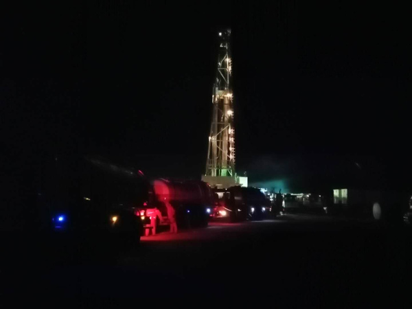 趙清軍從讓58-11-12井現場傳回來的信息,大慶市東油鉆采有限公司承擔的完井固井施工于2018年12月16日夜正在緊張的進行。